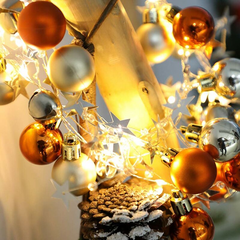 Design unico - La luce della stringa ha una perfetta corrispondenza dei colori, varie decorazioni: la luce della stringa è dotata di sfere dorate, paillettes a stella a cinque punte e campanelli. È la decorazione perfetta per le vacanze per la tua casa. Applicabile a qualsiasi luogo - La stringa di luce può essere appesa o avvolta in qualsiasi luogo.è realizzata in filo di rame, che può essere piegato a piacimento, oppure può essere trasformata in una ghirlanda sospesa ovunque. Vantaggio del prodotto - La stringa di luce è Realizzato in filo di rame per garantire la sicurezza del prodotto. L'illuminazione continua a lungo termine non provoca il surriscaldamento del prodotto. Modalità di alimentazione: la luce della stringa è alimentata dalla batteria, che è comoda e veloce di e non è necessario trovare la presa durante l'utilizzo. Dimensioni: la lunghezza delle luci delle corde è di 2 m e ogni stringa ha 20 luci a LED. Per ottenere effetti di luce migliori, si consiglia per
