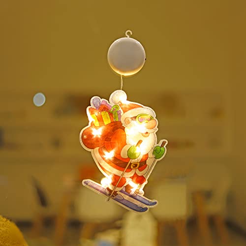 Luci natalizie per finestre e finestre, a batteria, con ventosa, decorazione natalizia, luce decorativa per finestra, per interni ed esterni, per feste di camera da letto, funzionamento a batteria