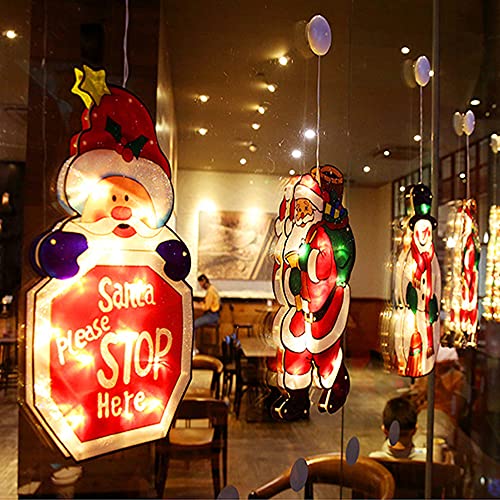 Luci Natalizie 3D con Sospese Ventosa, Luce Calda LED con Alimentato a Batteria, Luci di Ciondoli Natale Rotondi Appese Decorazioni per Pareti Finestre Casa Americane Lucine (Santa)