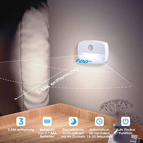 Luci Notturne LED con Sensore di Movimento,6 Pezzi Luce Notturna Bianca alimentata Batteria,Luce Notturna con Doppia Faccia Adesivo,Adatta Stanza da Letto,Scale,Corridoio.