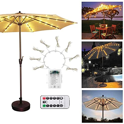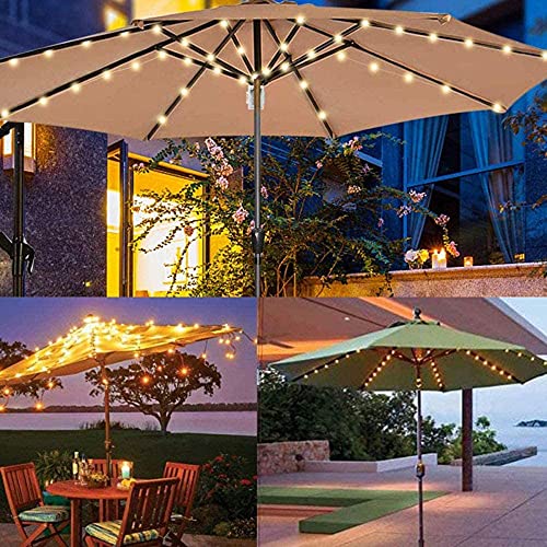 ⛱️ [FLESSIBILE E DUREVOLE] 104 LED, 8 rami, la lunghezza della luce di ogni ramo è di 130 cm in parallelo, la luce della stringa è progettata con materiale super morbido ultrasottile, ha una duttilità fine e una lunga durata e può essere moderatamente piegata per qualsiasi forma, che è adatta allo stile generale e al tipo di ombrello a sbalzo.