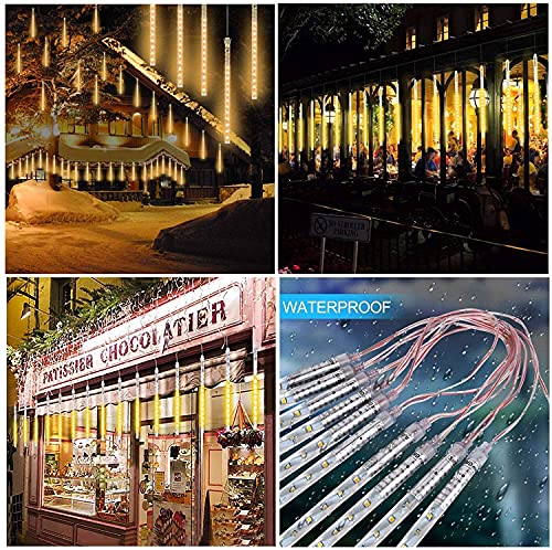 Luci Della Pioggia di Meteore, 30cm 8Tubo 144 LED Meteor Luci Natale Luci, Stringa Luci led,Catena Luminosa led,Impermeabili Meteor Shower Light per Festa di Nozze Decorazione All'aperto,Bianco Caldo