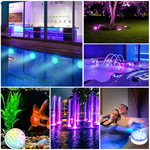 Luci Piscina, 4 Pezzi 13 LED Luci Piscina Impermeabile Luci Subacquee con Telecomandi 16 Colori Luce LED Sommergibili Luce Piscina RGB IP68 Impermeabilità Adatta per Giardino Vasca da Bagno SPA Vaso