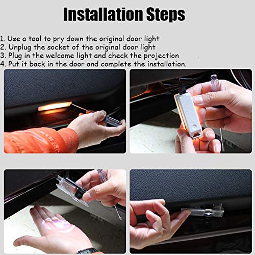 -Installazione non distruttiva, basta estrarre la vecchia lampada e posizionare il prodotto, non è necessario sostituire cavi o praticare fori. Tutte le nostre luci a LED sono progettate appositamente, facili da assemblare e sostituire direttamente. Nota: se il veicolo non dispone di una luce della portiera, non è consigliabile installare una luce di benvenuto.