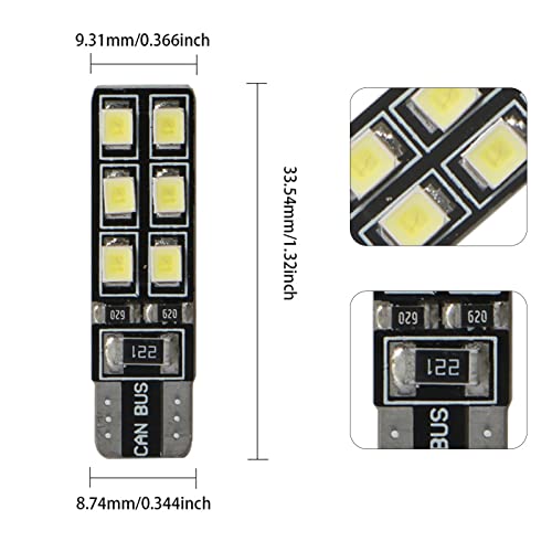 Auto Interno 6500k 12v Bianca: 6 lampadine LED T10, ciascuna con 2 chip LED, circa 2 volte più luminose delle lampadine alogene. Basso potere calorifico, risparmio energetico e maggiore durata.