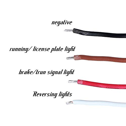 Connessione filo: Cavo nero-Negativo, Cavo marrone-Corsa / Luce targa, Cavo rosso-Fanale del segnale del freno / Trun, Filo bianco-Luce retromarcia