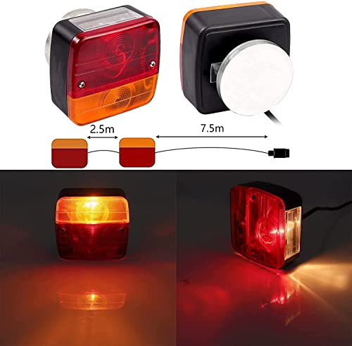 Set Luci Posteriori Magnetiche da Rimorchio DC12V con 7.5M Cavo 2PZ Fanali Posteriori Omologate E13 Lampade Targa Luce Rosso Giallo 7-Pin Connettore per Auto Camion Rimorchi Furgoni Camper