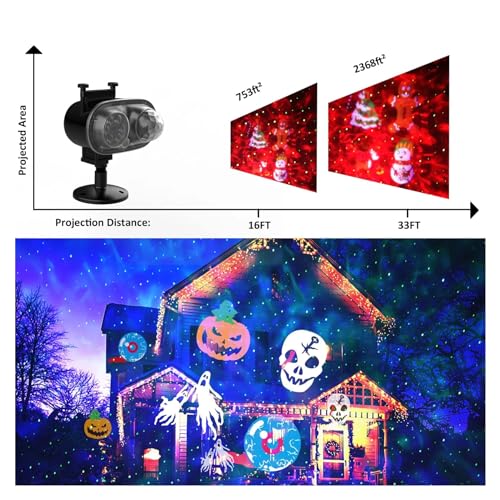 Luci Del Proiettore Di Natale Di Halloween For Interni Ed Esterni 2 In 1 - Onda + 16 Moi Di Proiezione Di Luci For Feste Da Giardino Decorazione per ologramma del proiettore per fines