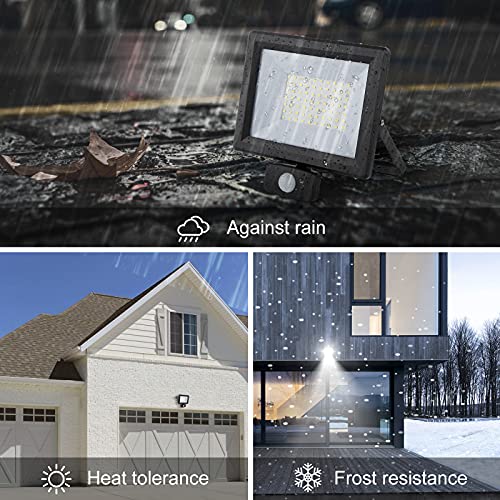 Luci di sicurezza da 50 W con sensore di movimento, luce di inondazione PIR da 5000 lumen, impermeabile IP65 con sensore a LED per esterni, bianco freddo per garage e giardino, con filo da 1.5 m