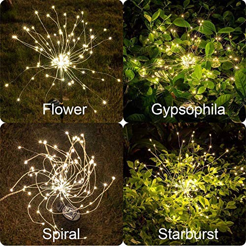 2 X Luci Solari Esterno Giardino Lampade Fuochi-artificio Decorativi Bianco Caldo Luce Stringa Solare con Scintillio e Steady-on 2 Modalità di Illuminazione per Giardino, Aiuola, Feste