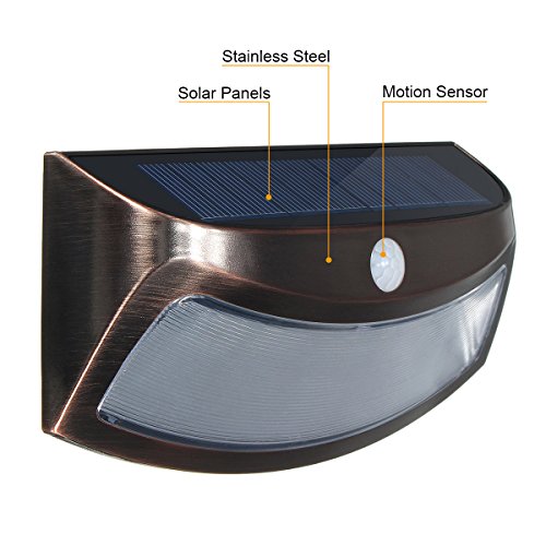 Luci Solari Esterno,GLISTENY Wireless ad Energia Solare Sensore di Movimento con 8 Lampadine LED per Parete, Muro, Giardino, Terrazzino, Cortile, Casa, Corraio Coppery(ON/OFF Switch,No Dim Light