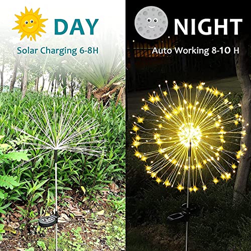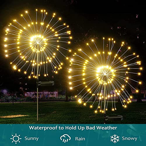 XRR Luci Solari Giardino Esterno 2 Pezzi 120LEDs Luci Solari Fuochi D'artificio, Solari Giardino Lampade Impermeabile Natale luci solari per giardino,matrimonio,cortile,festival (bianco caldo)