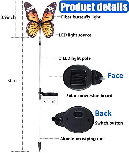 【Luci solari da giardino a farfalla】 Le luci LED con presa di terra possono essere posizionate o appese su strade, pavimenti, giardini, prati, boschi, cortili, piscine, ecc. Come un'eccellente illuminazione ambientale, può aggiungere un'atmosfera perfetta alla tua residenza.