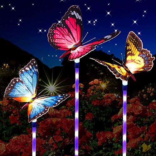 Luci solari da giardino a farfalla per esterni, 3 luci a palo solare, luci da giardino a LED che cambiano multicolore, illuminazione per decorazioni per feste all'aperto a farfalla in fibra ottica