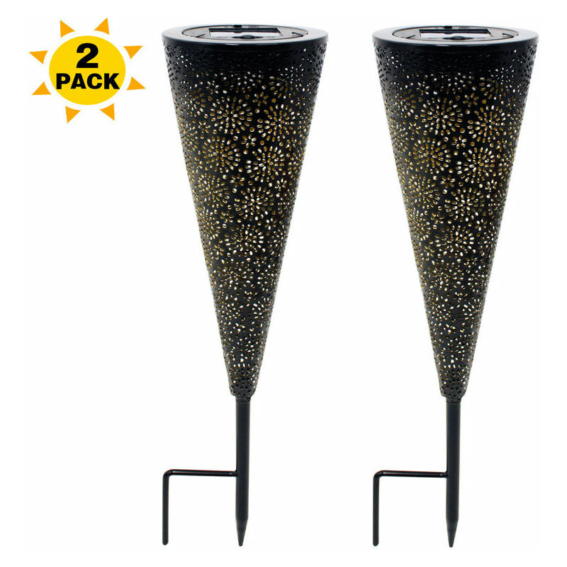 Pannello solare più ampio aggiornato con luci più luminose: le luci solari da giardino con il nostro pannello solare policristallino più ampio impermeabile aggiornato 5 V 120 mAh, con batteria integrata da 3,7 V 1200 mAh, LED super luminoso da 12 lumen, luci fino a 10 ore e porta luci più brillanti per illuminare percorsi, scale, vialetti mentre fa una bella aggiunta al tuo giardino. Allinea la tua passerella con loro ora Luci decorative in metallo creative con un esclusivo motivo a pizzo in pizzo: le luci solari decorative per esterni con un design unico a forma di cono e motivo a pizzo lasceranno un bellissimo motivo floreale riflesso sul terreno circostante, dipingiamo giallo all'interno del corpo, conferisce loro una luce soffusa per una calda atmosfera per il tuo giardino e crea un percorso luminoso caldo e invitante. Inoltre, sono anche un'ottima aggiunta al tuo giardino durante il giorno, possono aggiungere un aspetto elegante lungo il lato del giardino. DECORAZIONE DEL