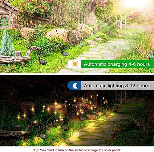 Accensione/spegnimento automatico: le luci da giardino per esterni si accendono automaticamente al crepuscolo e si spegneranno automaticamente all'alba. Nessun collegamento a filo e elettricità domestica, basta posizionare le luci solari del paesaggio della lucciola alla luce del sole e nessuna necessità di regolazione manuale, si carica di giorno e si accende automaticamente di notte.