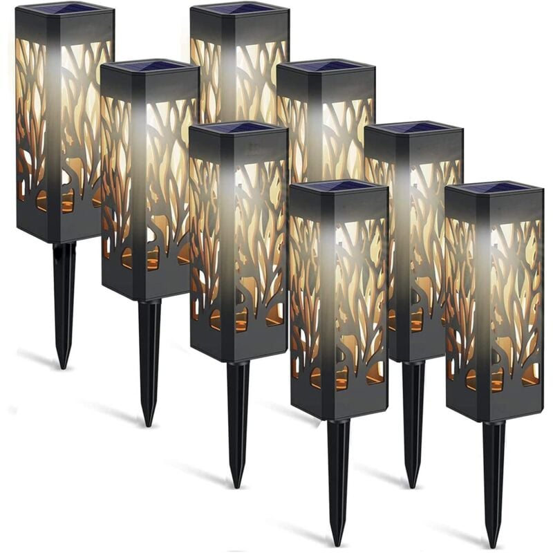 【Belle luci decorative】 Queste luci da giardino solari hanno uno stile carino con un bellissimo motivo scavato, un arredamento da giardino moderno e unico per te. Una luce calda passa attraverso l'involucro cavo. luci solari per esterni, creando un grazioso motivo di petali come un'opera d'arte. L'illuminazione decorativa può aggiungere un'atmosfera romantica alla tua casa. il tuo giardino. Abbellisci il tuo giardino, cortile, vialetto, balcone, marciapiede con l'accogliente luce decorativa delle luci solari da giardino. ✹【Alta efficienza Pannello solare: il pannello solare aggiornato è realizzato in silicio policristallino, che ha la più alta efficienza di conversione fotoelettrica di qualsiasi cella solare. La luce solare si trova in un luogo soleggiato, assorbe automaticamente l'energia solare, che viene caricata completamente in 6-8 ore, l'orario di lavoro è di circa 8-12 ore, si risparmia molta elettricità. Luce bianca calda molto meglio per gli occhi. ✹【 Impermeabile e