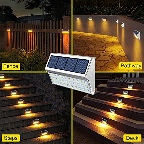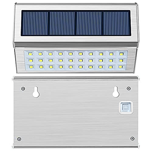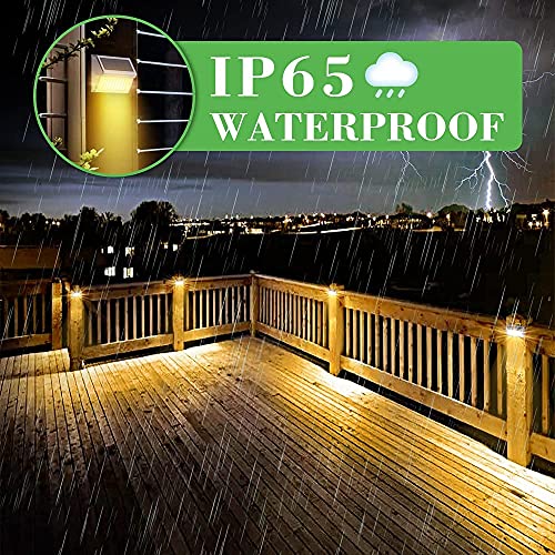 Luci solari per recinzione, luci decorative a LED, in acciaio inox, luci da giardino, impermeabili, wireless, per scale, pareti, patio, cortile, recinzione, confezione da 4 (30 LED bianco caldo)