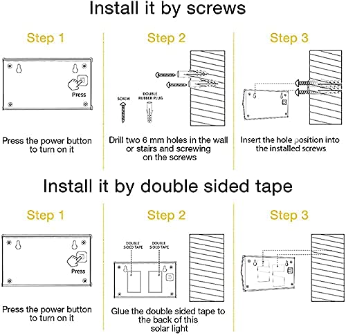 ☀ Le nostre luci sono molto facili da installare, non sono necessari fili fastidiosi. Le luci solari della piattaforma possono essere fissate con 2 viti o adesivo a doppio lato, perfette per gradini, percorso, ponte, scale, recinzioni, pareti, giardino, passerella, marciapiede, cortile ecc.