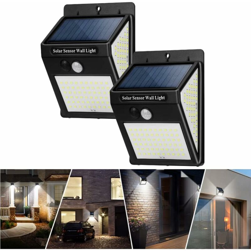 Luci solari con sensore di movimento, 144 LED Luci solari di sicurezza per esterni, esterni, impermeabili, senza fili, a energia solare, luci da parete esterne, grandangolo 270° con 3 modalità per recinzione, cortile Garage Pathway: Caratteristiche: 【Luci solari a 144 LED per esterni】 Le nostre luci solari aggiornate hanno 144 sfere di lampade a LED e 270°;