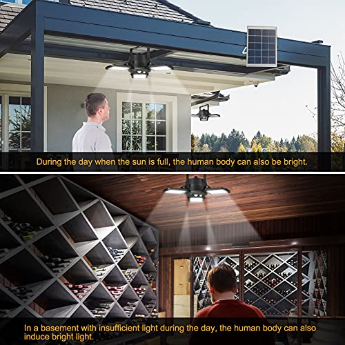 【Design flessibile a doppia testa divisa】 Il pannello solare e due lampade sono separati, i portalampada non sono limitati dal pannello solare e possono essere facilmente installati all'interno e all'esterno. Ogni foglia può regolare l'angolo di 120°, è possibile regolare il angolo per aumentare l'area luminosa per far risplendere la luce dove serve