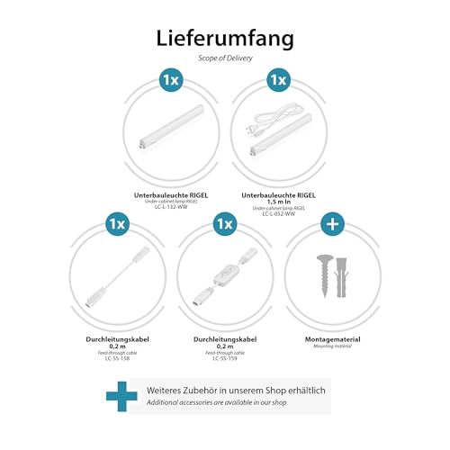 [Il materiale di montaggio in dotazione consente di installare la lampada sottopensile in modo semplice e rapido. A seconda dell'uso previsto, è possibile installare la striscia luminosa a LED rivolta verso il basso o in avanti.