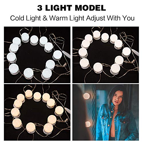 【3 Modalità colore】Il kit di luci a specchio di Hollywood ha 3 modalità di colore: bianco caldo, bianco naturale, luce bianca. Incontra le tue diverse esigenze in diverse occasioni. Si getta senza sfarfallio, naturale. Abbastanza luminosità e luce morbida rendono il vostro trucco look perfetto.