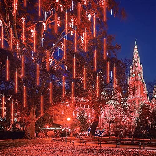 Luci Stringa 50cm 10 Tubes 480 LED Luminose Impermeabile Luci Della Pioggia di Meteore Basso Consumo Energetico e Risparmio Energetico per Giardino, Natale, Patio, Cancello, Matrimonio, Festa, Rosso