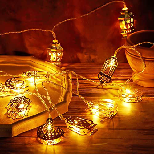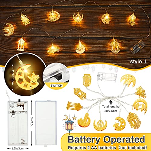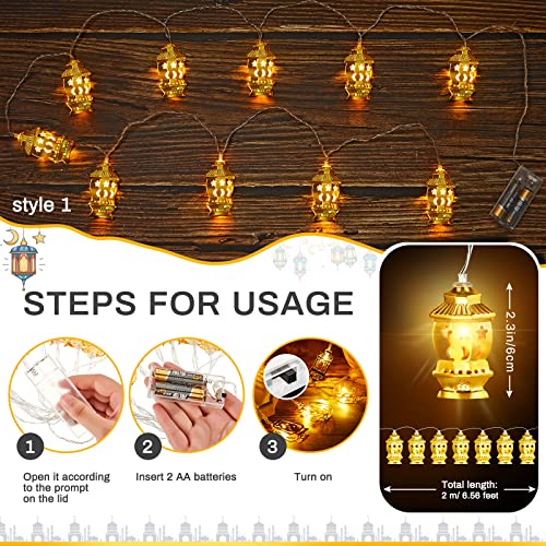 Set di luci Ramadan: il pacchetto include 1 pezzo di luci a stringa di luna stellare e 1 pezzo di luci a stringa di lanterna Ramadan, e la delicata combinazione può soddisfare le vostre esigenze di arredamento per la casa e le feste durante il Ramadan
