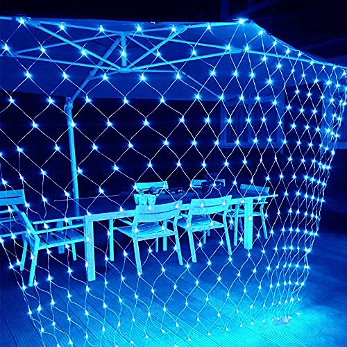 Luci della stringa della rete solare, 200 LED 3m x 2m Luci a stringa solari da esterno Luci della stringa di Natale con 8 modalità Remote Waterproof per giardino (Blu)