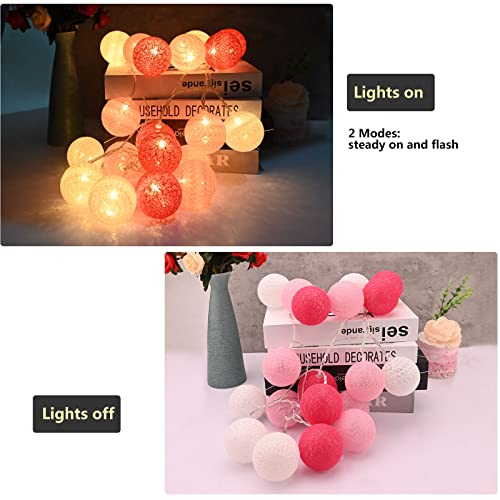 Luci della stringa LED Luci della stringa Sfera di cotone alimentata a batteria Luci della stringa LED Palline di lana 3m Luci per feste di compleanno di Natale all'aperto per interni pink