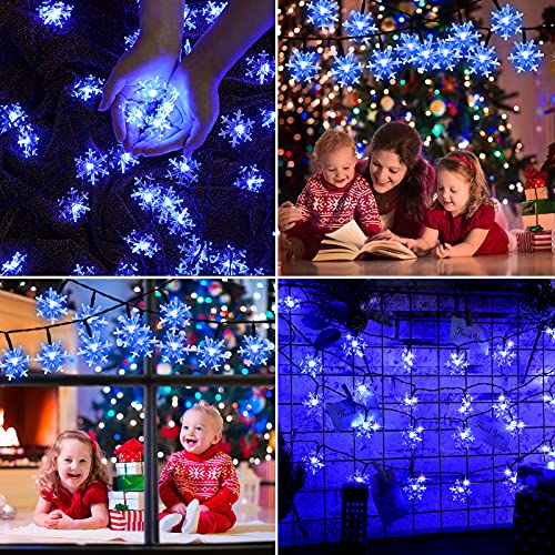 Luci Stringa Solari a Fiocco di Neve Decorazione, 50LED 23ft 8 Modalità Luci Fatate a Filo Impermeabile Solare per Patio Casa Giardini Festa all'Aperto Albero di Natale (Blu)