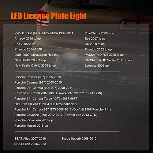 Kit Luci Targa Led,Compatibile Con VW Golf 4 5 Passat Porsche Cayman Cayenne 911 Seat Altea Leon Skoda Superb,12V 10W Canbus No Errore,Impermeabile IP67, Dimensione 77X28mm