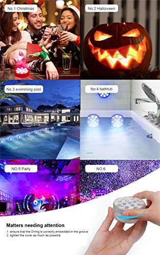Luci decorative per piscina: ogni luce sommergibile ha 13 LED integrati, supporta 16 cambiamenti di colore e 3 modalità dinamiche, flash, dissolvenza, liscia, supporta 5 livelli di luminosità regolabili, 3 opzioni di pulsante timer (2h, 4h, 6h).
