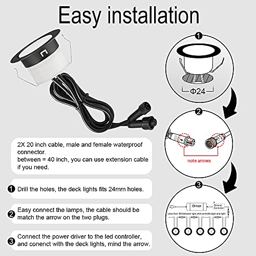 Impermeabile IP67, alimentatore di rete impermeabile IP67, dimensioni di ogni faretto Ø31 x 18,5 mm, diametro foro 25 mm;