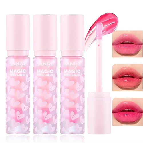 3 Pcs Lucidalabbra Cambia Colore Della Temperatura Tinted Lip Glow Oil, Rossetto Liquido Pink Magic, Nutriente di Lunga Durata Clear PH Color Change Lipstick Lipgloss Lip Tint Balsamo