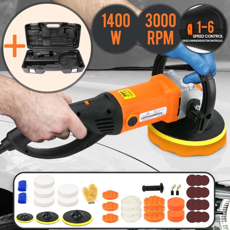 Proteggete le vostre superfici piane e il veicolo preferito mantenendo una routine di lavaggio dettagliata con l'aiuto della nostra lucidatrice. Eliminerà sporco, grasso e graffi che non possono essere rimossi con un semplice lavaggio e manterrà brillanti la vostra macchina e le superfici. Lucidatrice con accessori Potenza di 1400 W Tre dimensioni di dischi lucidanti (Ø): 125, 150, 180 mm Vari tipi di tamponi per lucidatura, spugne, guanto e valigetta inclusi La nostra lucidatrice per auto può essere utilizzata anche per lucidare altri veicoli come moto, barche e yacht oltre che per lucidare marmo e piastrelle di ceramica