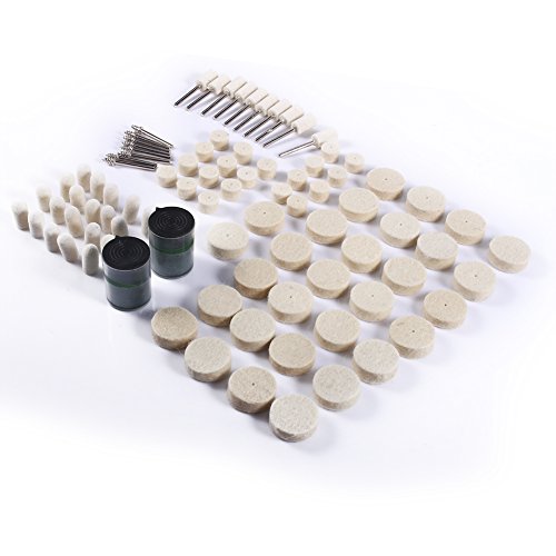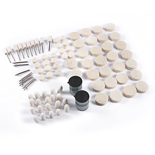 La confezione include: 2 paste diamantate per lappatura di paste per la lucidatura dei metalli, 50 ruote in feltro per lucidatura, 20 punte per lucidatura feltro, 10 x feltro per lucidatura con codoli, 8 perni