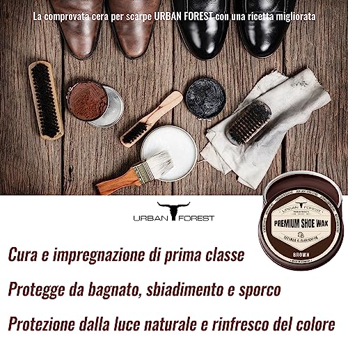 Lucido per Scarpe e Cera per Scarpe Marrone con Cera d'api e Olio di Avocado | Cura Pelle Scarpe Marrone | Crema per Scarpe per Pulizia Scarpe | Cura Scarpe Professionale di Urban Forest 150ml
