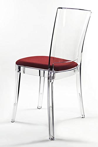 Lucienne Sedia Trasparente Neutro - Set 10 Pezzi - con Cuscino in Trevira Kat Rosso Tricolor - 16C2000