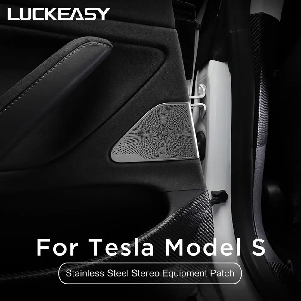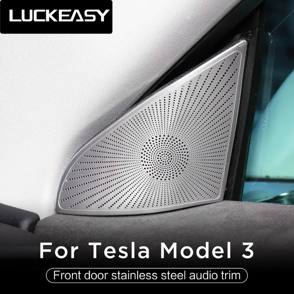 LUCKEASY Car Accessories Interior Modification For Tesla Model 3 Stainless Steel Stereo Equipment Audio Speaker Protective Patch
