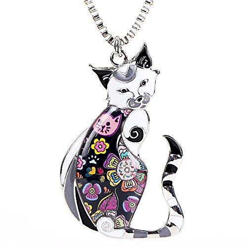 Luckeyui - Collana con ciondolo a forma di gatto colorato, regalo di compleanno per lei o per gli amanti dei gatti e Acciaio inossidabile, colore: Nero, cod. LUCKY049-Black