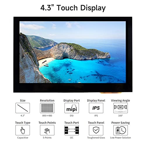 LUCKFOX 4.3inch Capacitive Touchscreen, 60Hz LCD Screen(800 x 480 Pixel) for Raspberry Pi, 160° Wide-Angle Low-Power IPS Screen, with MIPI DSI Interface, Suitable for Various Projects