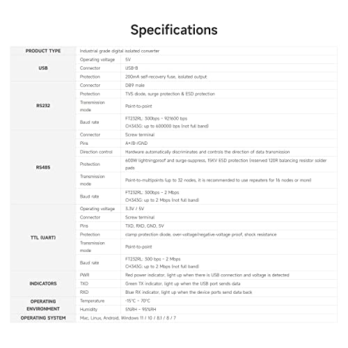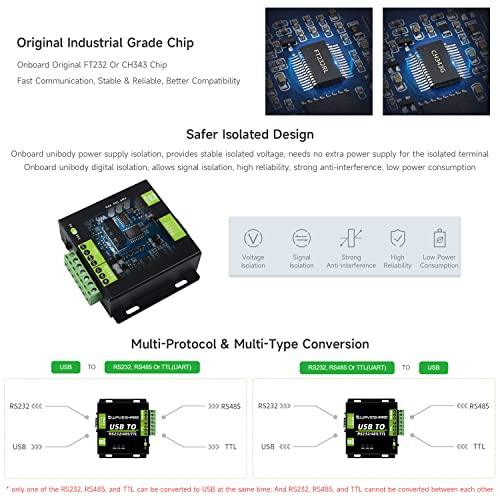 LUCKFOX Industrial Digital Isolated USB Converter, Waveshare USB to RS232/485/TTL, High Speed & Stable Transmission, for Multiple Devices, Compatible with Mac/Linux/Android/Windows 11/10/8.1/8/7
