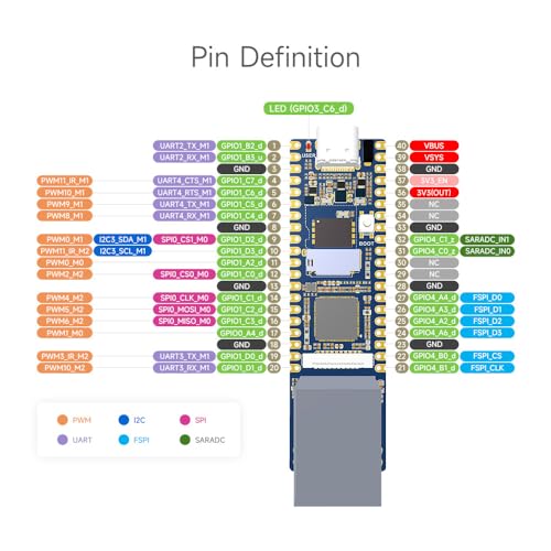 [Developer-Friendly] LUCKFOX Pico supports multiple interfaces, including GPIO, UART, SPI, I2C, USB, etc., enabling developers to carry out rapid development and debugging. With built-in 16-bit DRAM DDR2, POR, audio codecs, MAC PHY, and RISC-V MCU, it ensures efficient memory bandwidth