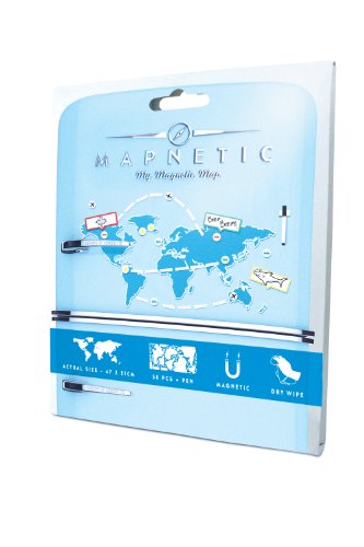 Luckies LUKMAGN Mapnetic Set con Mappa del Mondo Magnetica Cancellabile a Secco, Tessuto, Blu, 0.2 x 48 x 20 cm