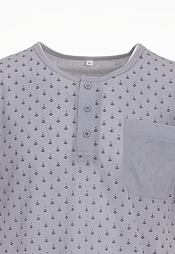 LUCKY Camicia da notte da uomo, a maniche corte, con abbottonatura sul petto, grigio., XL