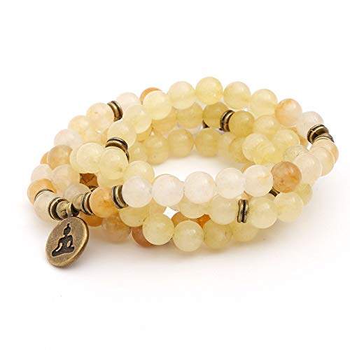 Lucky House Moda Donna Fatto a mano Naturale 108 Drago Verde Agata Pizzo Bracciale Loto Simbolo Buddista Bracciale Yoga 108 Collana (giallo)
