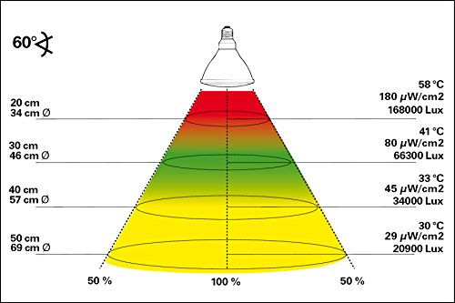 Angolo di diffusione di 60° per un'illuminazione ampia del terrario.