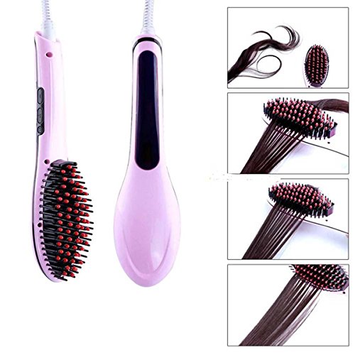 LuckyFine 100-230V Elettrico Veloce Raddrizzatore Capelli Taglio LCD Spazzola del Pettine Antiscottatura Ionico Auto Massaggiatore Strumento pink
